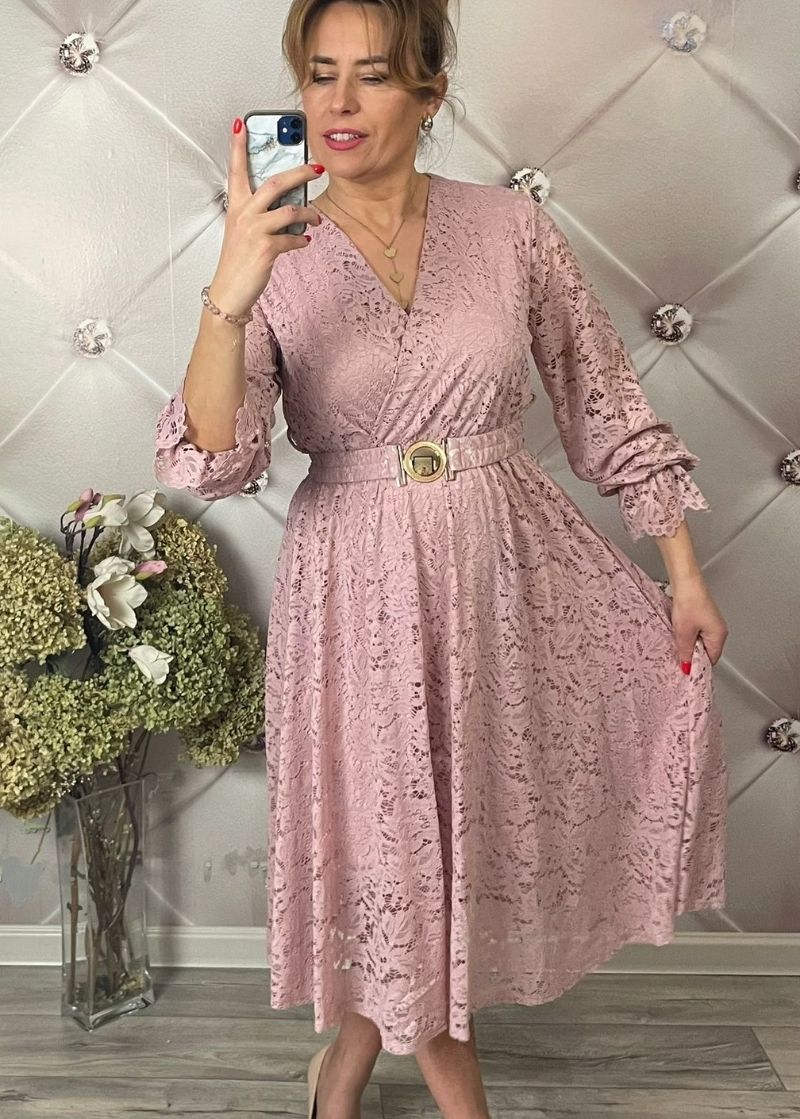 149,00 złZJAWISKOWA SUKIENKA Z MIĘCIUTKIEJ, ELASTYCZNEJ KORONKI, FASON PODKREŚLAJĄCY TALIĘ DZIĘKI PASKOWI, DEKOLT KOPERTOWY, RĘKAW DŁUGI WYKOŃCZONY GUMECZKĄ ORAZ OZDOBNĄ FALBANKĄ.W PASIE GUMKA, KTÓRA DOPASOWUJE SIĘ DO KAŻDEGO ROZMIARU.