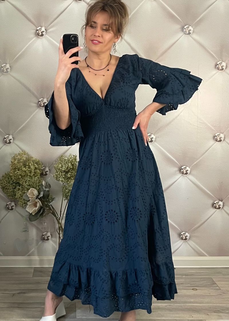 185,00 złZJAWISKOWA, HAFTOWANA SUKIENKA MAXI, KTÓRA ŁĄCZY ROMANTYZM I KOBIECOŚĆ, WYJĄTKOWY KRÓJ PODKREŚLA SYLWETKĘ, A SZEROKIE FALBANIASTE RĘKAWY DODAJĄ LEKKOŚCI. DEKOLT SUKIENKI WYKOŃCZONY GUMKĄ, POD BIUSTEM RÓWNIEŻ DROBNE GUMECZKI , KTÓRE SPRAWIAJĄ, ŻE SUKIENKA DPASOWUJE SIĘ DO KAŻDEJ SYLWETKI, RĘKAWY ROZSZEŻANE Z DWOMA FALBANAMI, DÓŁ SUKIENKI RÓWNIEŻ Z PODWÓJNĄ FALBANĄ. POD SPODEM PODSZEWKA, Z TYŁU DEKOLT PÓŁOKRĄGŁY.